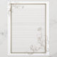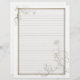Cabeçalho de Linha Opcional Floral de Latão Quadro Branco. Exclua o gráfico da linha se preferir papel de carta sem linhas. Use o botão personalizar para alterar a cor do fundo e mudar o papel de carta de acordo com as suas necessidades - a área de escrita e o quadro mudarão para a tonalidade que você escolher.