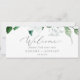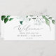 Este lugar de boas-vindas é perfeito para um verão ou casamento outono. A design do boho moderno apresenta folhas de esmeralda, sábio e aquarela verde-oliva e botânicos com esférulas de flores brancas elegantes. A placa impressão na frente e atrás (lado duplo). Verifique a coleção de placas de números de tabela de coordenação.