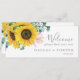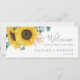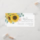 Este cabeçalho de boas-vindas de girassol rústico é perfeito para um casamento no campo. O design floral boêmico apresenta girassóis amarelos, flores cor-de-rosa pinceladas e verde-caçador de eucalipto verde em aquarela com um elegante e moderno sentimento de bolho. A placa impressão na frente e atrás (lado duplo). Verifique a coleção de placas de números de tabela de coordenação.