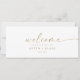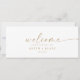 Este moderno roteiro de ouro pendurado no cabeçalho de boas-vindas é perfeito para um casamento minimalista. O simples design de cor amarela apresenta uma tipografia industrial única, com estilo boho moderno. Personalizável em qualquer cor. Mantenha o design mínimo e elegante, como está, ou personalize-o adicionando seus próprios gráficos e trabalhos de arte. A placa impressão na frente e atrás (lado duplo). Verifique a coleção de placas de números de tabela de coordenação.