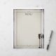 Forquilha e colher de vidro de vinho com um simples pano de fundo vitoriano envelhecido nesta cartola de cardápio para eventos de comida e vinho, provandos de vinho, festas de janto gourmet e eventos de restauração.
