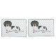 A ilustração original de desenho animado de Destei de um lindo e longo cabelos preto e um cão da raça Dachshund, de cor casaco bronzeada. O fundo tem um padrão de pegadas de cinza.