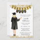 Um convite de graduação divertido e exclusivo que inclui um formando de aquarela personalizado que se parece com o seu formando. Muitos penteados e cores estão disponíveis.