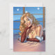 Aqui está uma beleza loira de olhos azuis desejando-lhe Feliz Natal! Ela tem um chapéu de Santa no pé! E um sorriso enorme no rosto dela.