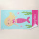 Esta toalha de praia personalizada da sereia do monograma caracteriza uma sereia doce no rosa. Tem o cabelo louro e os olhos e natações claros das cinzas sob o mar com seus amigos cor-de-rosa da estrela do mar. Esta toalha pode ser personalizada com um nome. A pia batismal e a cor da pia batismal podem ser personalizadas.