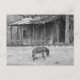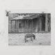Cabine e burro no cartão postal B&W