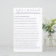 Aprecie seus convidados com um charmoso jogo de chá de panela de Girassol e Girassol, "Como Você Conhece a Noiva?" Este jogo envolvente é uma maneira maravilhosa de adicionar diversão e risos ao chá de panela, testando quão próximos os convidados conhecem a noiva. Apresentando um belo design de flor silvestre e girassol, este jogo é perfeito para um tema de chá de panela rústico ou inspirado na natureza. Desafie seus convidados a responder perguntas sobre a noiva e veja quem a conhece melhor com o jogo de chá de panela "Como você conhece a noiva?".