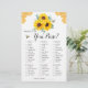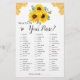 Este cartão de jogo de chá de panela é O que há na sua bolsa? O design apresenta design floral de aquarela com girassóis, folhas de eucalipto, abelhas e favos de mel. Personalize a parte de trás das cartas com o nome da noiva. Os suprimentos correspondentes da parte do chá de panela também estão disponíveis.