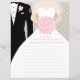 Elegante noivo gráfico com fraque e noiva com véu segurando um ramalhete de rosas estilizadas cor-de-rosa em jogo de busca de palavras clássico de chá de panela no verso e palavras de conselho no reverso. Edite estes divertidos jogos de chá de panela e folhas de conselhos com o nome da noiva. Seus convidados se divertirão muito tentando procurar e encontrar estas palavras comuns de casamento usando a chave de palavras, ideal para oferecer um prêmio ao convidado mais rápido que completar. A noiva irá se divertir vendo as palavras de sabedoria oferecidas por seus convidados. Desenho único e arte gráfica por Sarah Trett para www.mylittleedenweddings.com na Zazzle.