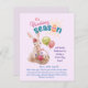 Se você não pode se juntar para sua caça anual de Ovos de Páscoa este ano você não tem que perder a diversão! Você pode ter uma caça virtual aos ovos de Páscoa. Prepare um bate-papo, arranje uma data e uma hora e envie seus convites da maneira antiquada! Esconda alguns ovos em sua casa e quando você está no bate-papo do vídeo, deixe seus hóspedes pegá-lo em turnos para caçar por ovos. Use seu telefone para que você possa estar móvel. Você pode dar pistas dizendo quente quando eles se aproximam de um ovo, e frio quando eles não estão perto. Este belo coelho ilustrado com coelho com cesto de flores ajudará você a começar a festa! Preços do orçamento, mas papel e cartão de qualidade. Transferir para um folheto ou outro tipo de papel/cartão, conforme desejado. Divirta-se!