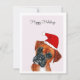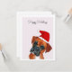 Para todos os amantes do Boxer Dog lá fora, aqui está um cartão para você. Um feliz feriado do seu cão Boxer no Natal. Um Cachorro Aquarela vestindo um chapéu de Papai Noel no centro deste cartão de Natal.
