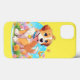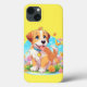 Um iPhone 13 Case com uma fotografia de um filhote fofo sentado entre as flores. Ele parece muito feliz por estar cercado por flores e borboletas. O presente perfeito para dar àqueles que amam cachorros. Contém conteúdo generativo.