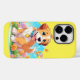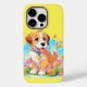 Um iPhone 14 Case com uma fotografia de um filhote fofo sentado entre as flores. Ele parece muito feliz por estar cercado por flores e borboletas. O presente perfeito para dar àqueles que amam cachorros. Contém conteúdo generativo.