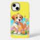 Um iPhone 14 Case com uma fotografia de um filhote fofo sentado entre as flores. Ele parece muito feliz por estar cercado por flores e borboletas. O presente perfeito para dar àqueles que amam cachorros. Contém conteúdo generativo.