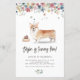 Woof! Convide a família e os amigos com este convite de aniversário de cão personalizável. Apresenta uma garland floral de aquarela, um Corgi fofo e um padrão floral correspondente para o verso do convite. Este convite para cães Corgi é perfeito para festas de aniversário de crianças e festas de aniversário de cães. Os textos são perfeitamente editáveis para qualquer ocasião. Personalize adicionando seus próprios detalhes de evento.