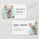 Este cartão de visita delicioso apresenta um filhote lúdico com um fundo aquoso macio, criando um design quente e convidando. Ele destaca seus serviços de aliciamento e fornece todos os detalhes essenciais de contato, fazer fácil para os clientes se conectarem. Uma escolha perfeita para mostrar seu amor e cuidado com os animais de estimação!