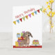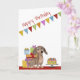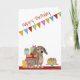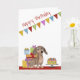 Cartão de aniversário. Um dachshund com presentes de aniversário e bolo. Parabéns. Personalize este cartão para qualquer idade, destinatário, cor. Um aniversário para comemorar? Envie um cartão de aniversário de aquarela para sua família e amigos e deseje-lhes o aniversário mais doce de todos! Este cartão de aniversário está disponível em algumas línguas que não o inglês e como um cartão personalizável para o desejo, a idade e o destinatário do aniversário.