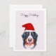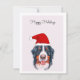 Para todos os amantes do Cachorro Bernese lá fora, aqui está um cartão para você. Um feliz feriado do seu cão de montanha Bernês no Natal. Um Cachorro da Montanha Watercolor Bernese vestindo um chapéu de Papai Noel fica no centro deste cartão de Natal.