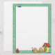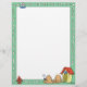 Esta linda cartoon letterhead tem uma borda verde com ossos de cachorro correndo pelos quatro lados, e um cachorro dormindo na frente de uma casa de cachorro na base.
