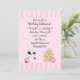 Cãozinho bonito e convite de aniversário cor-de-rosa para meninas. Alguns gráficos por artwork©delightful-doodles.com