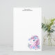 Papel de papelaria com uma imagem adorável de um doce retrato de cabeça de unicórnio bebê. Uma borboleta gentil visitando, balançando perto do nariz. Um buquê de flores em volta do pescoço completou esta design muito bonita.