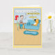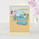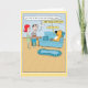 Este engraçado cartão de aniversário de cartoon mostra um cão que é rei do sofá, mas concede permissão a dois de seus servos quando eles vêm com waffles.