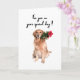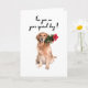 Cachorro fofo com flor na boca, cachorro golden retriever com rosas na boca, cartão de aniversário de cachorro.