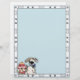 A cabeça azul tem osso de cão e borda de pata com gata e hidrante de fogo.