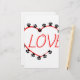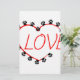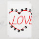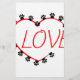 Desenhos de estampas de pata de cachorro, um coração vermelho e a palavra "amor". Design original.