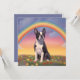 Um cartão de compaixão personalizado do Boston Terrier com uma bela pintura de um Boston Terrier em uma colina celestial com uma bela sobrecarga do arco-íris. Simbolizando o cachorro de Boston Terrier passou a ponte do arco-íris para o céu de cão. Você pode personalizá-lo com o nome do seu próprio "Boston Terrier dog" ou qualquer outro texto no verso da carta. Faz um memorial especial ou um presente de simpatia para qualquer amante de um cão de Boston Terrier se o seu querido cão tiver passado.