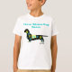 Eu adoro corridas de cachorros-salsicha em negrito texto negro acima do trabalho de arte gráfico de um dachshund branco preto coberto de flores pintadas, com seu número de corridas nas costas e tênis. Um presente adorável para qualquer amante doxie.