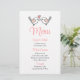 Adicione diversão ao seu casamento ou ao próximo evento com este cartão de cardápio de beija-flores rosa giro. Cartões de menu de pássaros de amor rosa e branco são perfeitos para seu * casamento, chá de panela - verão, primavera, jardim, país * feriados * eventos comerciais * aniversários, festas de janto, aniversários * angariantes de fundos e caridade. Role para baixo para ver os produtos correspondentes que você pode desfrutar.