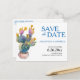 Planejando um casamento com tema ou destino mexicano? Convide seus convidados a Salvar a Data com esses cartões-postais de anúncio de casamento em aquarela, apresentando um estilo de cactos pintados à mão em um fundo branco limpo e seus detalhes em uma fonte serifada tradicional azul rica. O verso é um espaço para adicionar detalhes de envio. Adicione os detalhes do seu evento abaixo usando os campos de modelo fornecidos. Uma escolha botânica para casamentos em um cenário do Sudoeste. Visite www.zazzle.com/vginvites para ver mais dos meus designs.