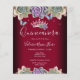Design elegante e de tendência com tipografia de rico. Todo o texto é ajustável e fácil de mudar para as necessidades do seu próprio partido. Excelente elegante Quinceañera design. Disponível em cores diferentes. Linda princesa tiara com arranjo de cacto suculento. Borboleta azul com borda floral inferior. Diferentes cores de fundo disponíveis.
