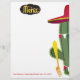 Cactus vestindo um sombrero e bandeiras, segurando um garfo neste cardápio mexicano ou sudoeste, perfeito para copos, festas de janto, noite mexicana ou de chef e menus de restauração.