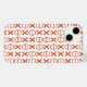Padrão baseado em cordas de símbolos simples. O impressão é vermelho-alaranjado. A cor de fundo sólida pode ser facilmente personalizada.
