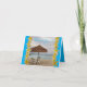 Cartão de agradecimento com duas cadeiras de praia sob um guarda-sol de palha na Praia de Iroquois Point com Diamond Head ao fundo. Localizado em Oahu, Havaí. O interior está em branco para impressão personalizada ou escrever sua mensagem pessoal de agradecimento.
