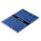 Um grande caderno com um dom ocidental. Caracteriza um teste padrão azul do bandana na parte superior e na parte inferior. Uma listra preta funciona através do centro com texto customizável.