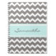 Um jornal espiral bonito com ziguezagues retros claros elegantes e modernos do azul de turquesa, do cinza e os brancos das vigas listra o teste padrão. Personalize este caderno com seu texto conhecido ou feito sob encomenda.