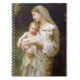 Caderno da inocência de Bouguereau. Pintura a óleo em canvas desde 1883. William-Adolfo Bougueeau era um pintor e um neo-classicist franceses da tradicionalista que tirassem frequentemente em temas mitológicos, bíblicos, e literários. Seu trabalha características da inocência uma jovem mulher bonita que guardara um bebê e um cordeiro. A mulher tem claro - cabelo marrom e veste um vestido branco e um xaile creme-colorido. Um olhar doce e delicado marca seu countenance enquanto o bebê cai adormecido. Um presente bonito para fãs de Bouguereau, de neoclassicism, da pintura alegórica, dos cordeiros, e dos bebês.