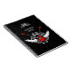 O caderno personalizado com a ilustração do rock and roll que caracteriza dois cruzou guitarra elétricas com asas e enfeites barrocos do vintage em vermelho, no branco e no preto.