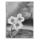 Desenho floral preto e branco elegante com uma paisagem suave e sonhadora. Perfeito para diário, notas e criatividade cotidiana