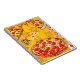 O Caderno de Pizza apresenta uma mistura encantadora de fatias de pizza em desenho animado, queijo derretido e pepperoni realista - tudo isso contra um fundo amarelo vibrante. Criado por uma criança de 7 anos, este caderno divertido é perfeito para quem ama pizza e criatividade.