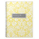 Jornal espiral do planejador do casamento com teste padrão floral clássico amarelo brilhante elegante do amarelo, o cinzento e o branco do damasco do vintage, com o texto customizável para adicionar sua própria mensagem. Aperfeiçoe para os planos do casamento e os detalhes de organização, um grande presente para que a noiva seja.