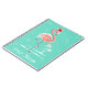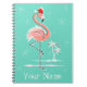 O design à moda com um toque retro caracterizando vestir-se cor-de-rosa festivo do flamingo papai noel vermelho chapéu, estrelas e palmeiras decorados com baubles ajustou-se contra um fundo do aqua. Um design customizável para que você personalize com seus próprios texto, imagens e ideias. Uma imagem digital original da arte criou pelo chique subtil.