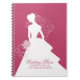 Caderno espiral elegante feito em cor-de-rosa e em branco, com uma silhueta branca de uma noiva, contra um fundo do rosa cor-de-rosa. O texto cor-de-rosa é inteiramente customizável. Personalize o texto para ler o que você quer. Aperfeiçoe para o planeamento héctico da noiva.