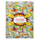O caderno da banda desenhada com provérbios gosta do crescimento! Prisioneiro de guerra! e Poof! Bolas de canhão e nuvens do pensamento nas cores de vermelho, amarelo, verde em uma luz - fundo azul. Você pode escrever o que quer que você gosta. A palavra "notas" é editável e você pode adicionar seu nome. Se você clica sobre "personalize mais" a relação/botão que você pode mudar a pia batismal e as cores da pia batismal.