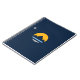 Notebook com nova bandeira da cidade de Reno, Nevada; uma bandeira azul escura com sol amarelo e montanhas azuis no centro