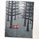 Uma raposa vermelha selvagem se situa entre as árvores de uma floresta escura. Uma pintura paisagística para amantes de animais, natureza e vida selvagem.