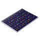 A spiral notebook with a dark blue cover featuring a repeating geometric pattern. The design includes colorful diagonal lines and abstract shapes. The mood is modern and vibrant.